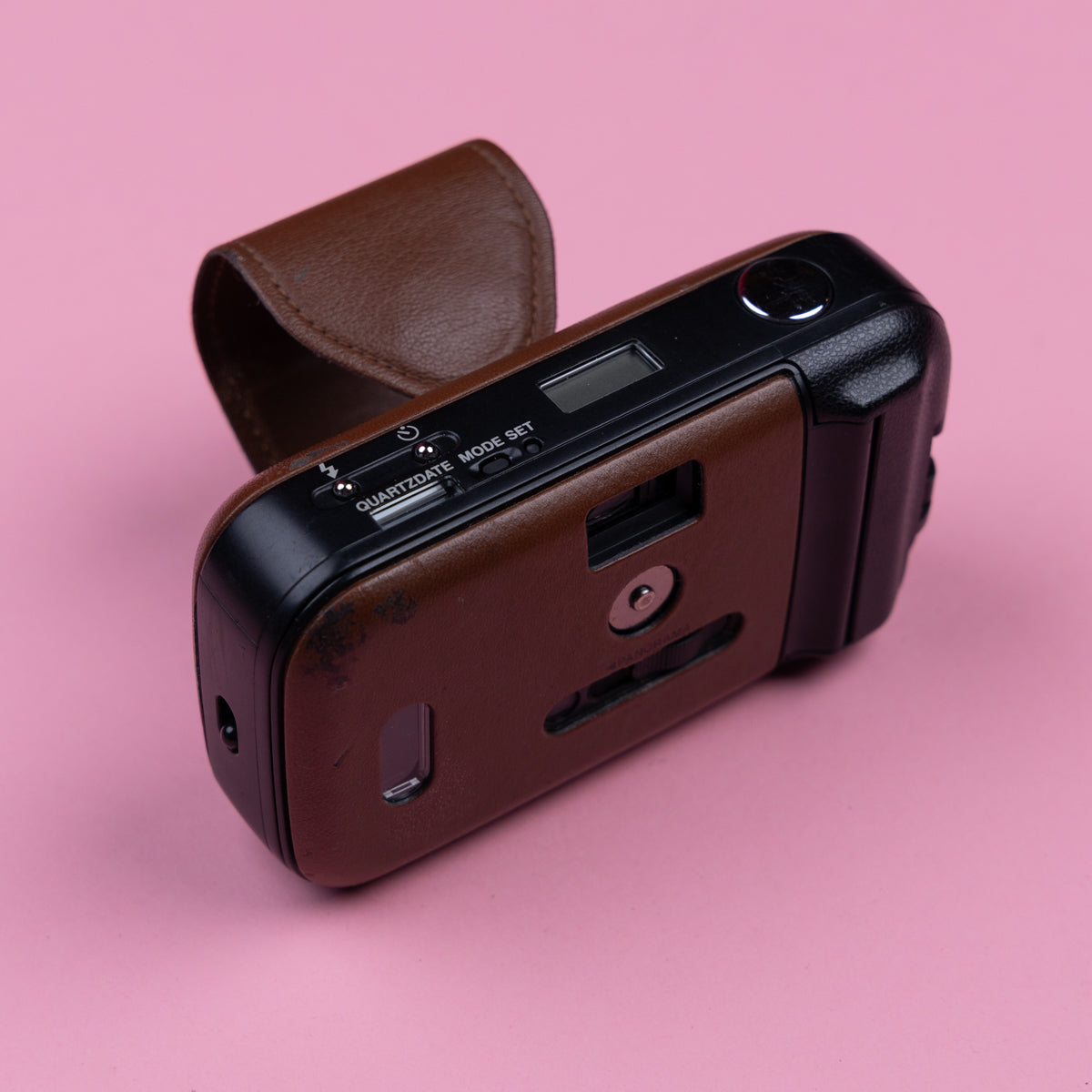 The Olympus LT-1 (launched 1994) is a premium, stylish 35mm point-and-shoot camera, often described as an Olympus Mju I in a leather-clad suit. It features a sharp 35mm f/3.5 prime lens, fully automatic operation, and a distinct synthetic leather body available in various colours, designed for portability. The LT-1 also comes equipped with a panorama button for wide panorama shots.