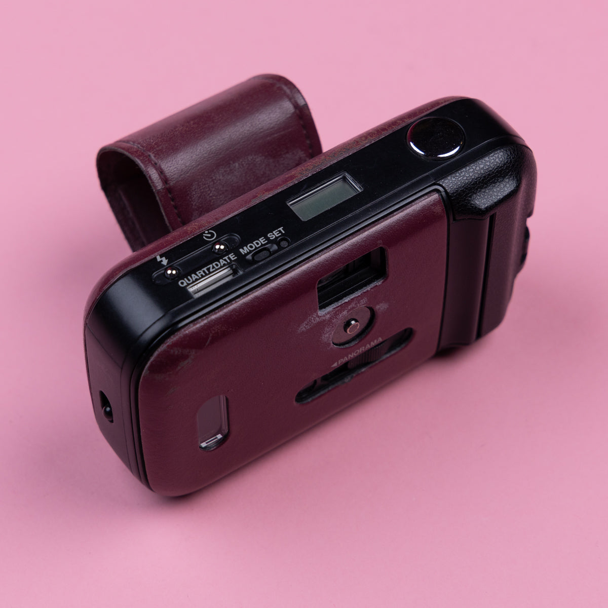 The Olympus LT-1 (launched 1994) is a premium, stylish 35mm point-and-shoot camera, often described as an Olympus Mju I in a leather-clad suit. It features a sharp 35mm f/3.5 prime lens, fully automatic operation, and a distinct synthetic leather body available in various colours, designed for portability. The LT-1 also comes equipped with a panorama button for wide panorama shots.
